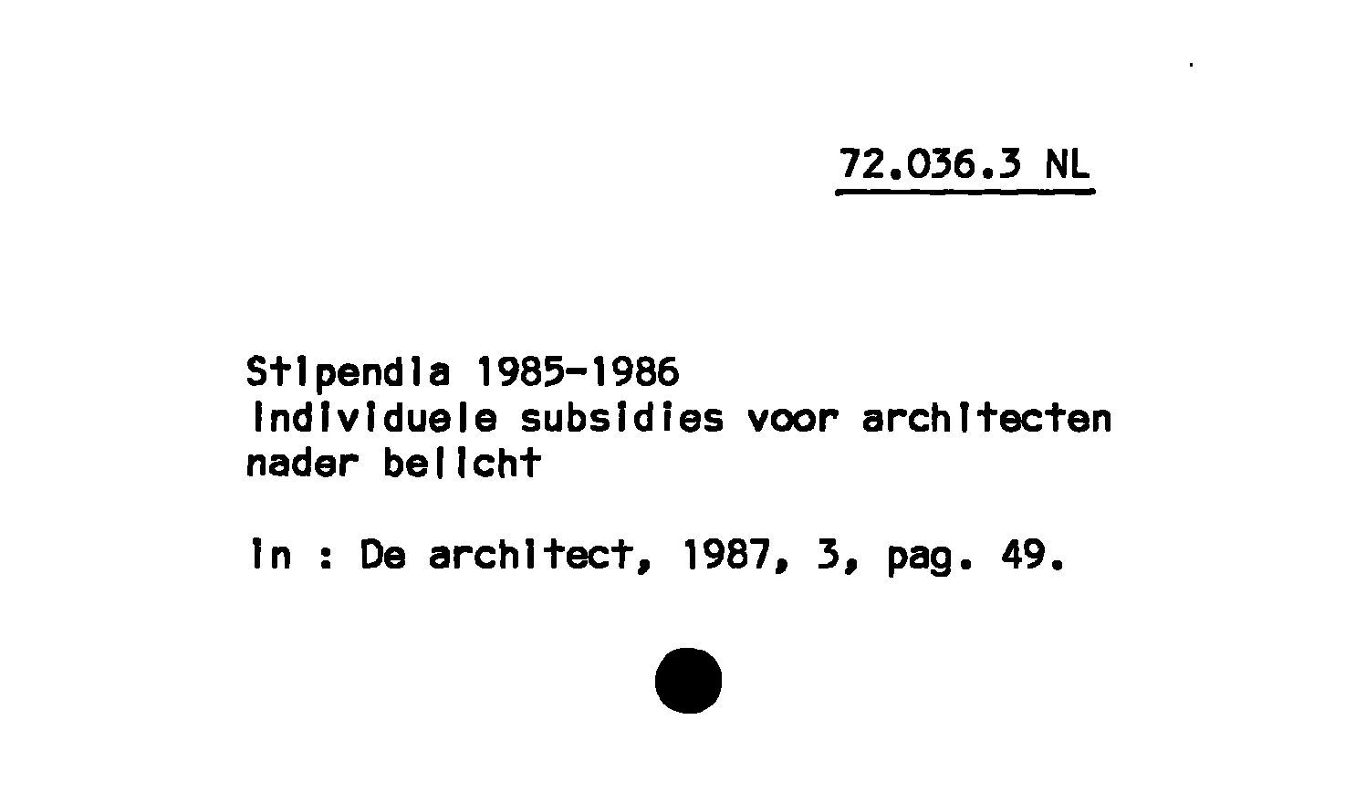 Stipendia 1985-1986 : Individuele subsidies voor architecten nader belicht