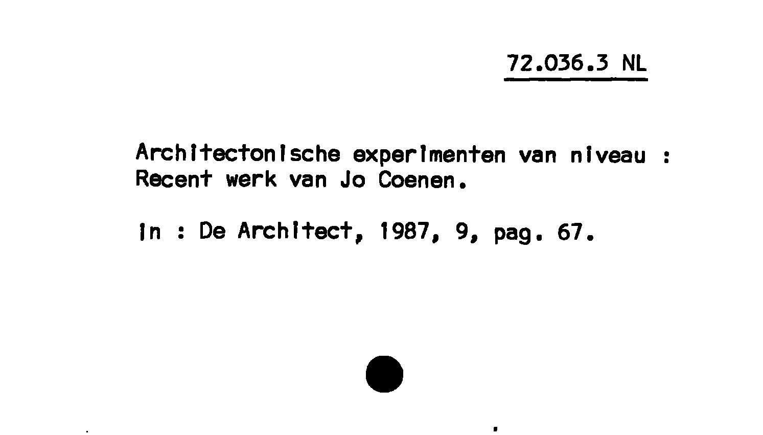 - Architectonische experimenten van niveau : Recent werk van Jo Coenen