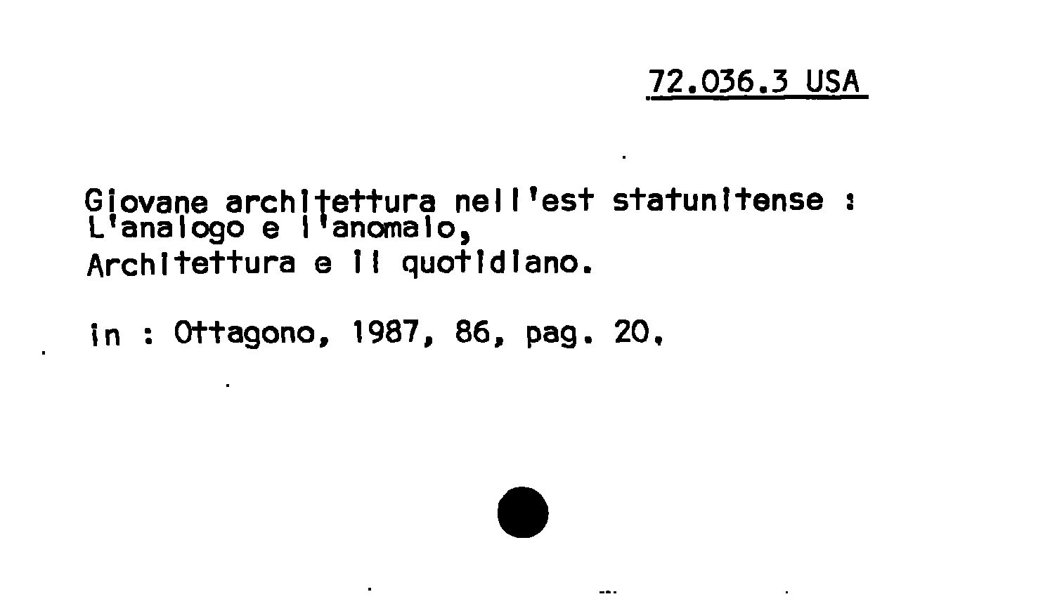 - Giovane architettura nell'est statunitense : L'analogo e l'anomalo, ; Architettura e iI quotidiano