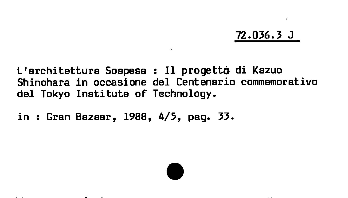 - L'architettura Sospesa : II progettó di Kazuo Shinohara in occasione del Centenario commemorativo del Tokyo Institute of Technology
