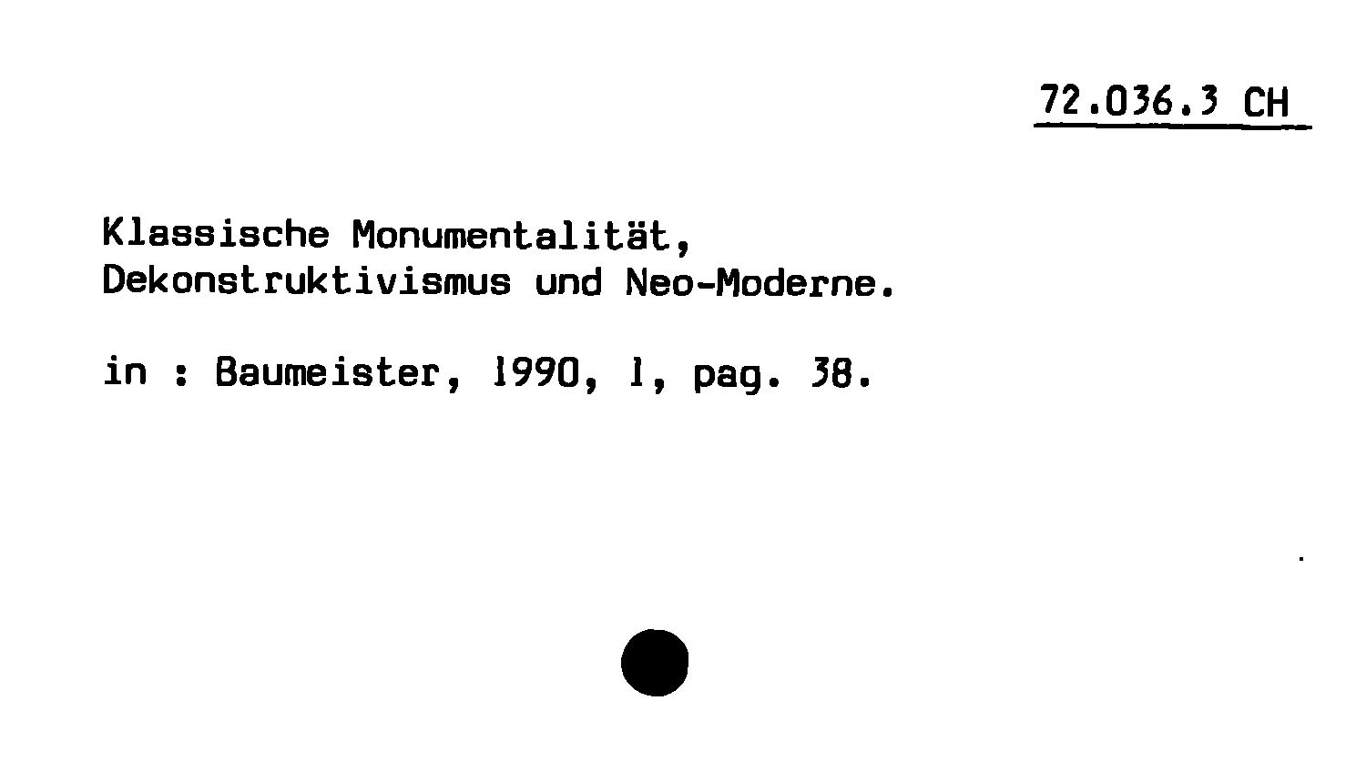 - Klassische Monumentalität, Dekonstruktivismus und Neo-Moderne