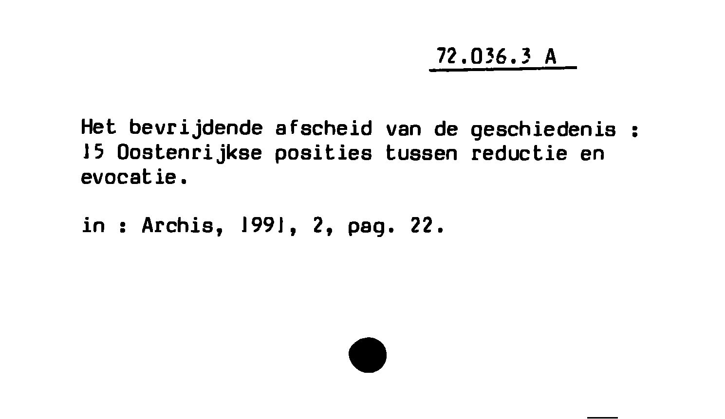 - Het bevrijdende afscheid van de geschiedenis : 15 Oostenrijkse posities tussen reductie en evocatie