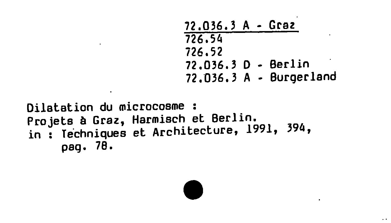 - Dilatation du microcosme : Projets à Graz, Harmisch et Berlin