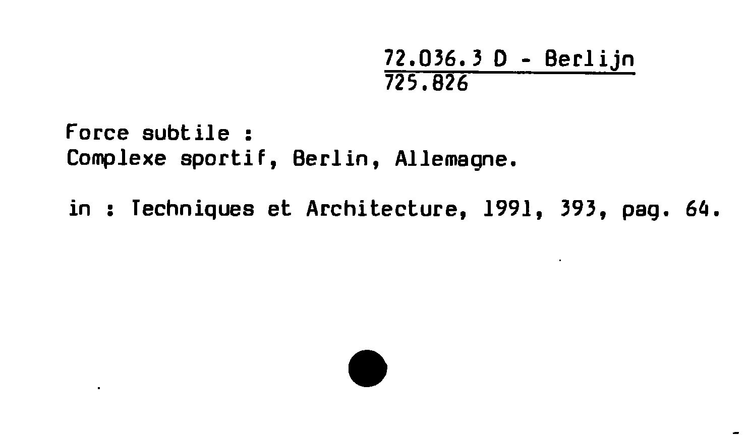 - Force subtile : Complexe sportif, Berlin, Allemagne
