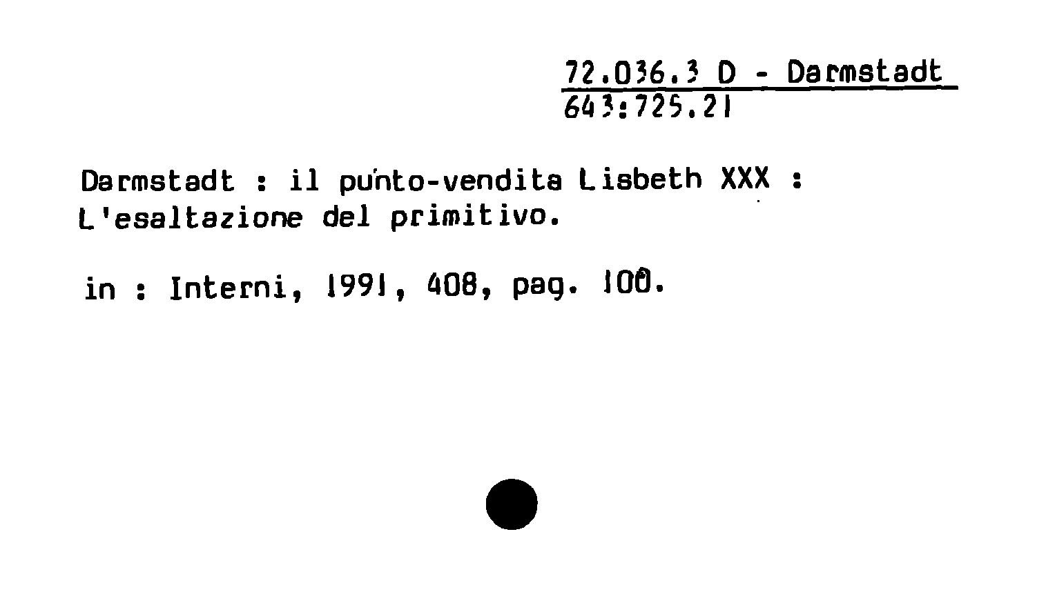 - Darmstadt : il punto-vendita Lisbeth XXX ; L'esaltazione del primitivo