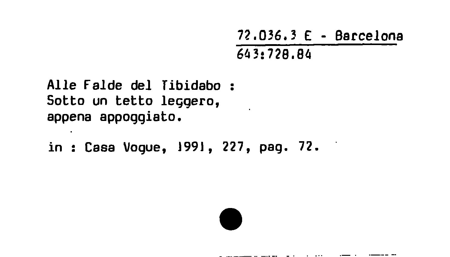 Alle Falde del Tibidabo : Sotto un tetto leggero, appena appoggiato