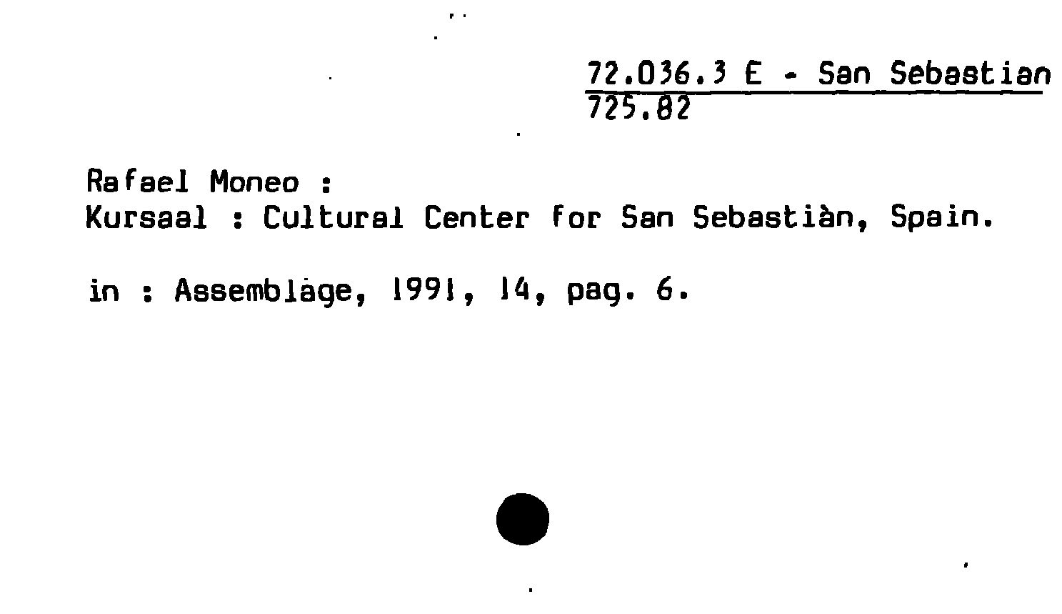 - Rafael Moneo ; Kursaal : Cultural Center for San Sebastiàn, Spain