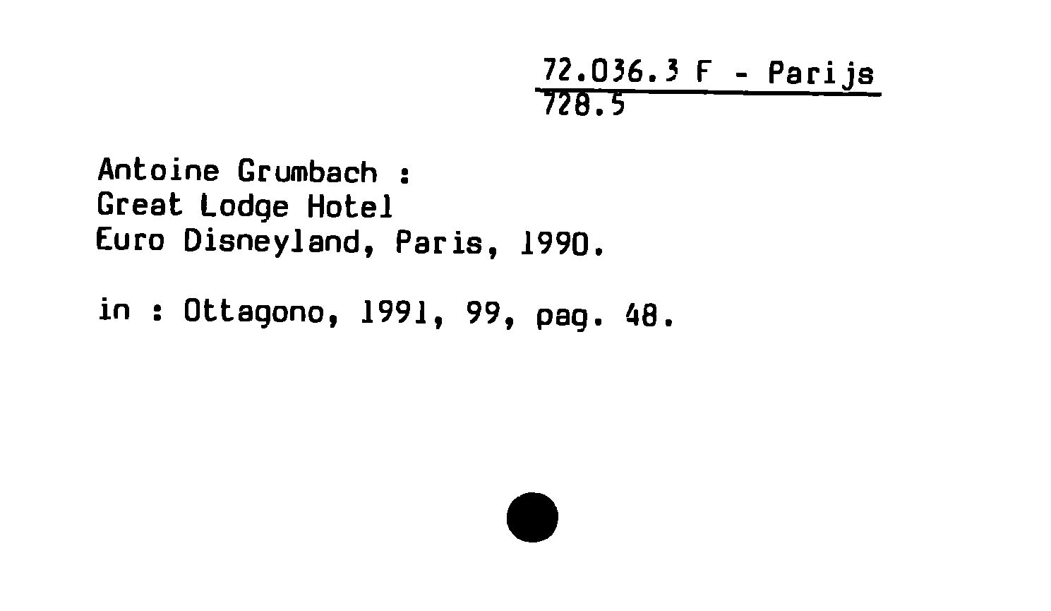 - Antoine Grumbach : Great Lodge Hotel Euro Disneyland, Paris, 1990