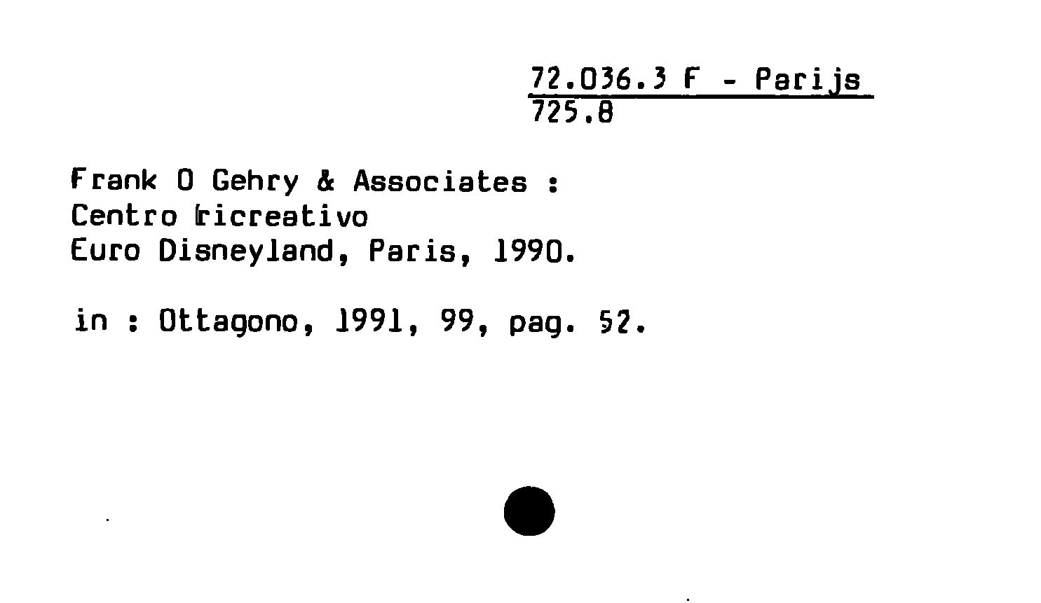 - Frank O Gehry & Associates : Centro ricreativo Euro Disneyland, Paris, 1990
