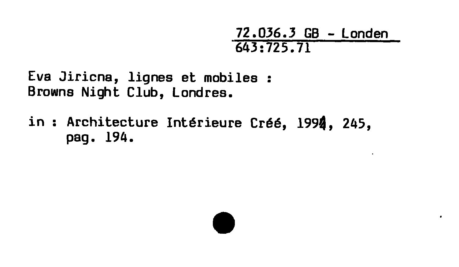 - Eva Jiricna, lignes et mobiles : Browns Night Club, Londres