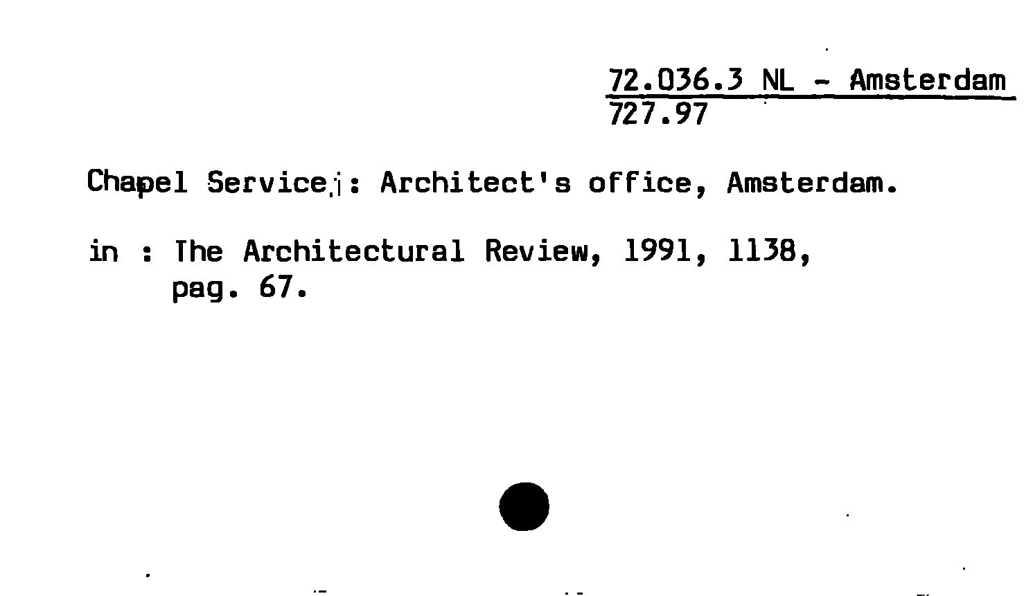 - Chapel Service: Architect's office, Amsterdam