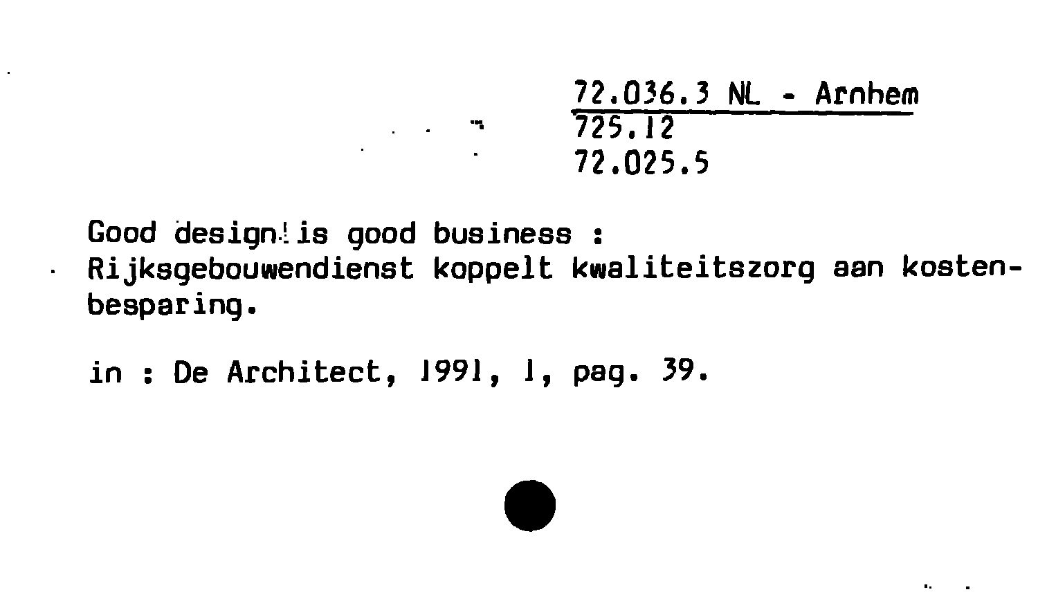 - Good design is good business : Rijksgebouwendienst koppelt kwaliteitszorg aan kostenbesparing