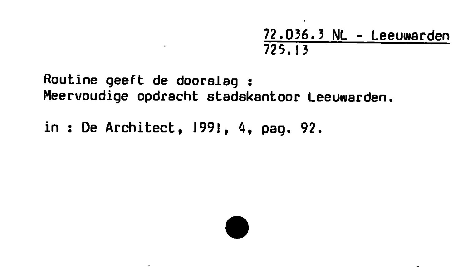 - Routine geeft de doorslag : Meervoudige opdracht stadskantoor Leeuwarden