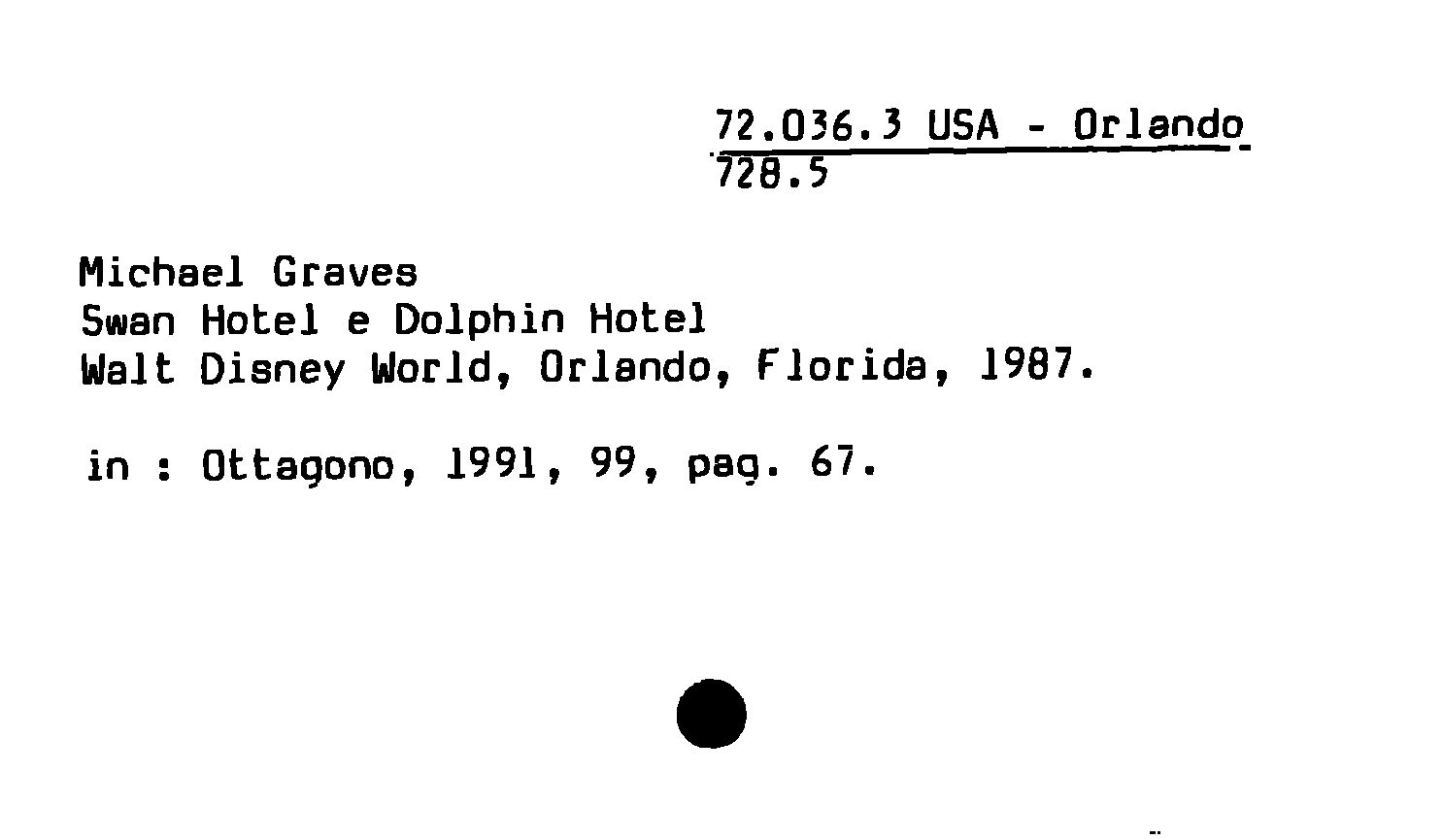 - Michael Graves : Swan Hotel e Dolphin Hotel Walt Disney World, Orlando, Florida, 1987