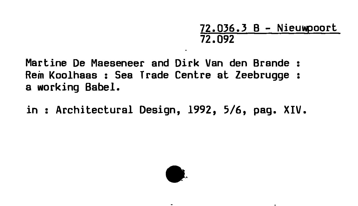 - Martine De Maeseneer and Dirk Van den Brande : Rem Koolhaas : Sea Trade Centre at Zeebrugge : ; a working Babel