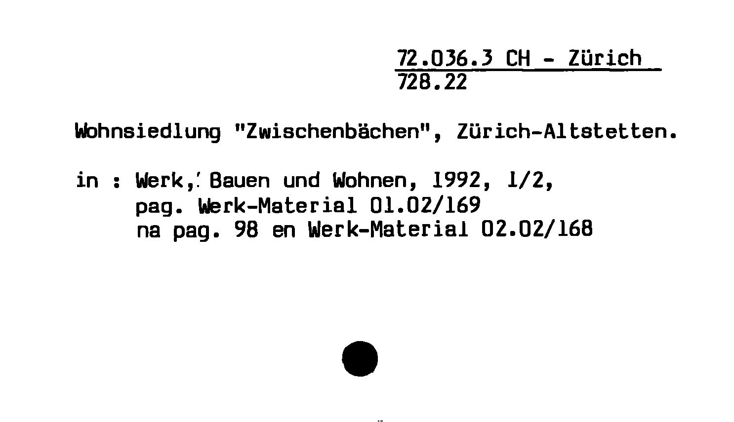 - Wohnsiedlung "Zwischenbächen", Zürich-Altstetten