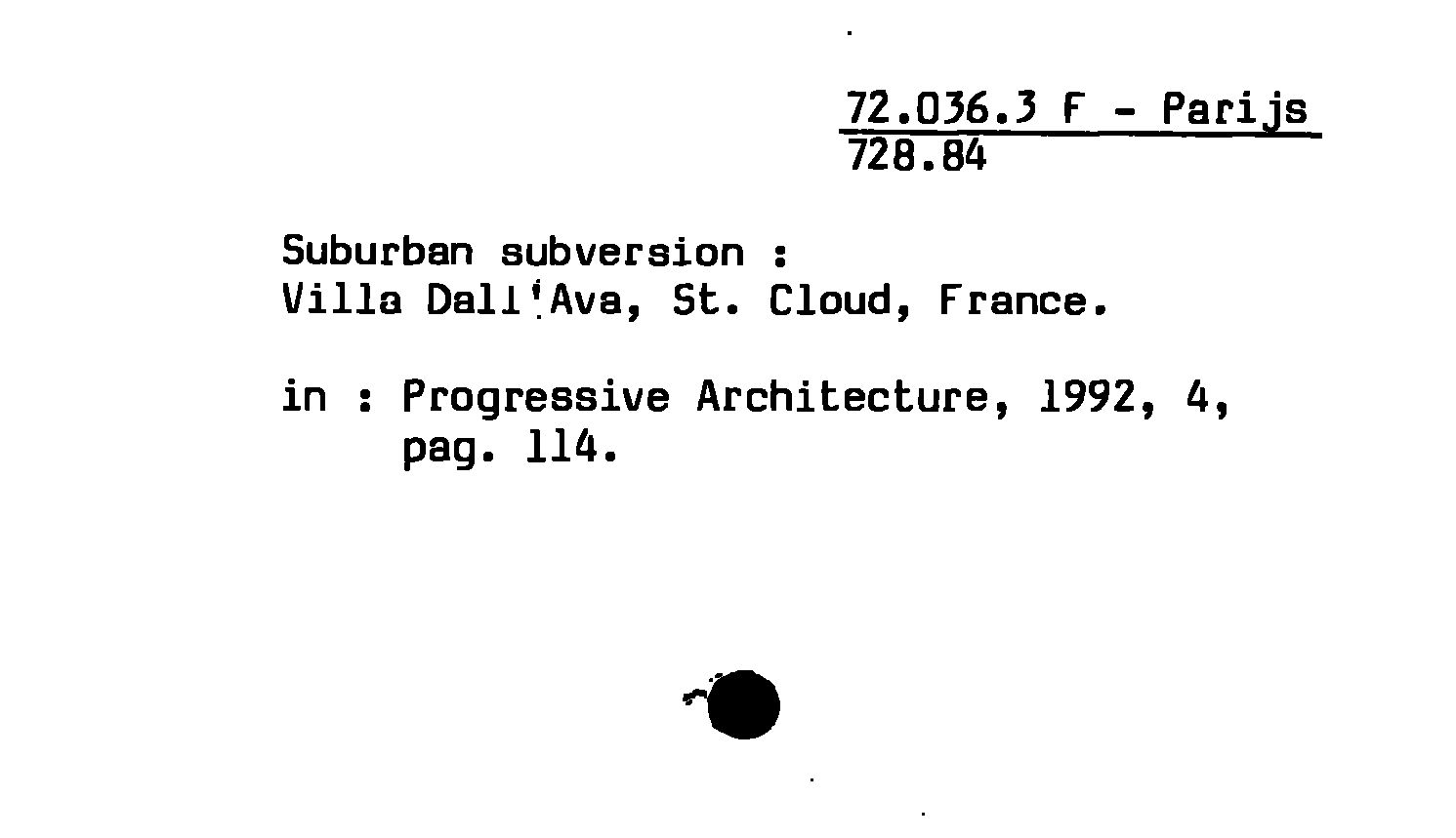 - Suburban subversion : Villa Dall'Ava, St. Cloud, France