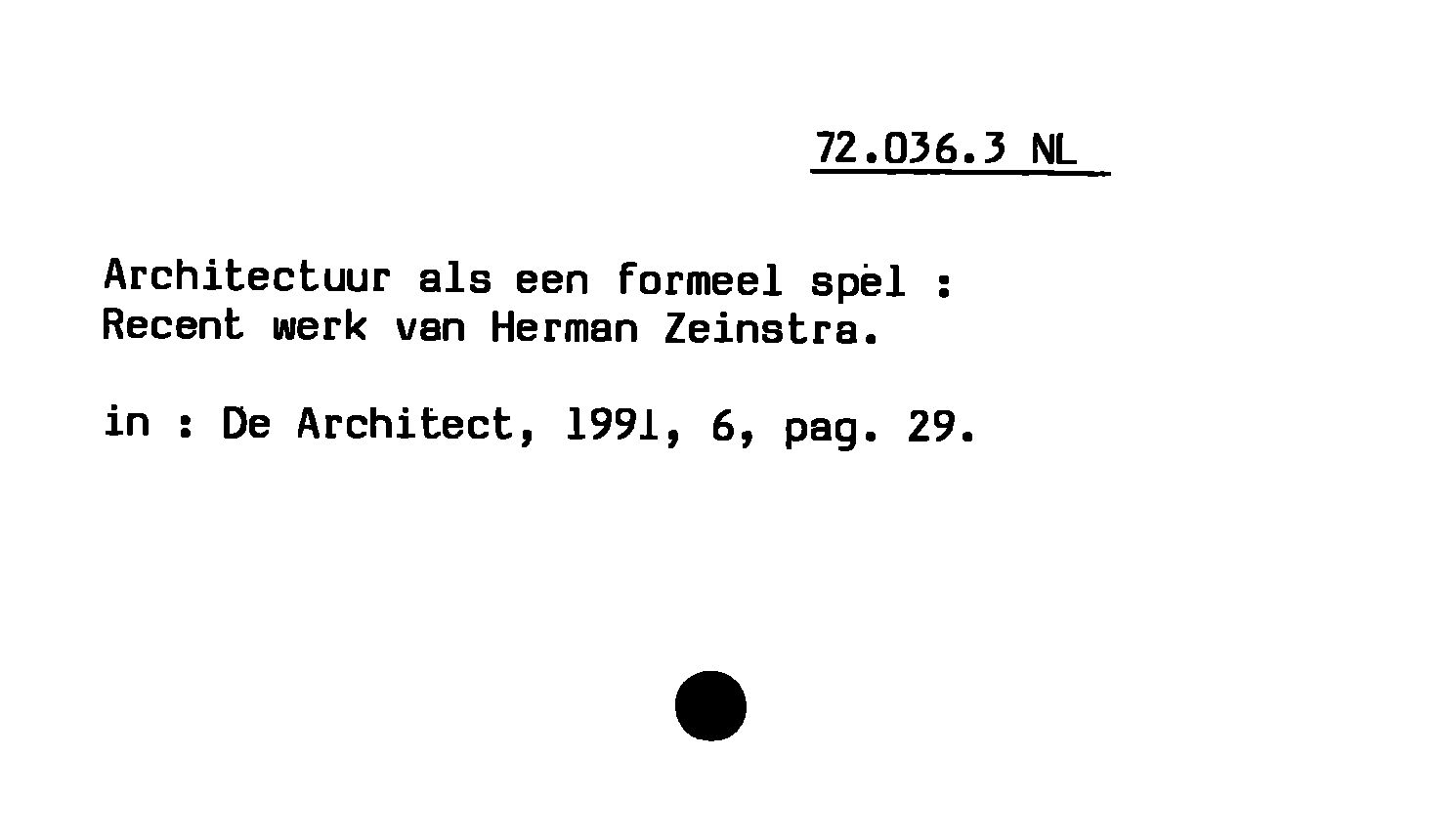 - Architectuur als een formeel spel : Recent werk van Herman Zeinstra