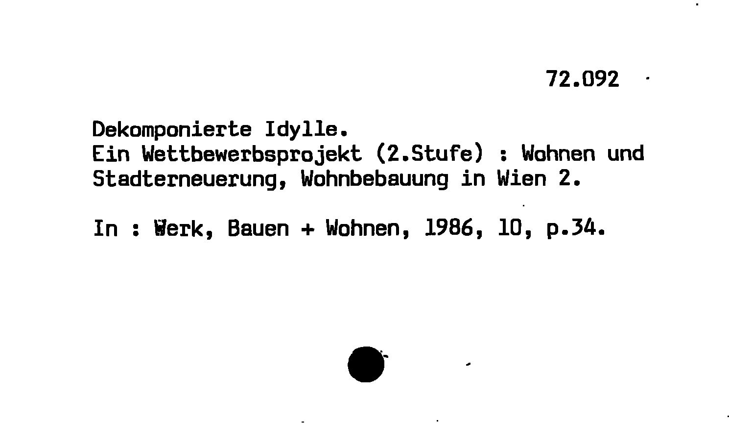 - Dekomponierte Idylle : Ein Wettbewerbsprojekt (2.Stufe) ; Wohnen und Stadterneuerung, Wohnbebauung in Wien 2