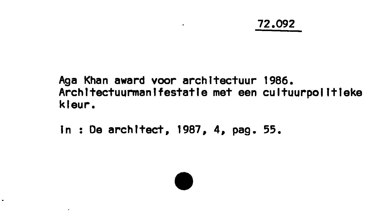 - Aga Khan award voor architectuur 1986 : Architectuurmanifestatie met een cultuurpolitieke kleur