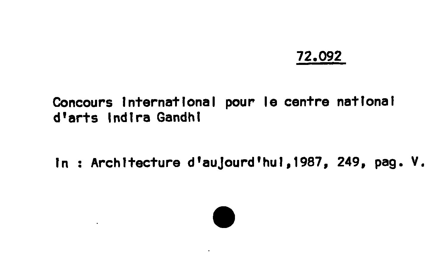 - Concours International pour Ie centre national d'arts Indira Gandhi