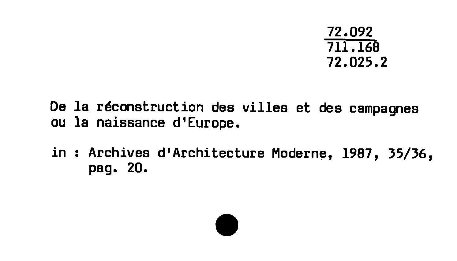 De la réconstruction des villes et des cam nes ou la naissance d'Europe