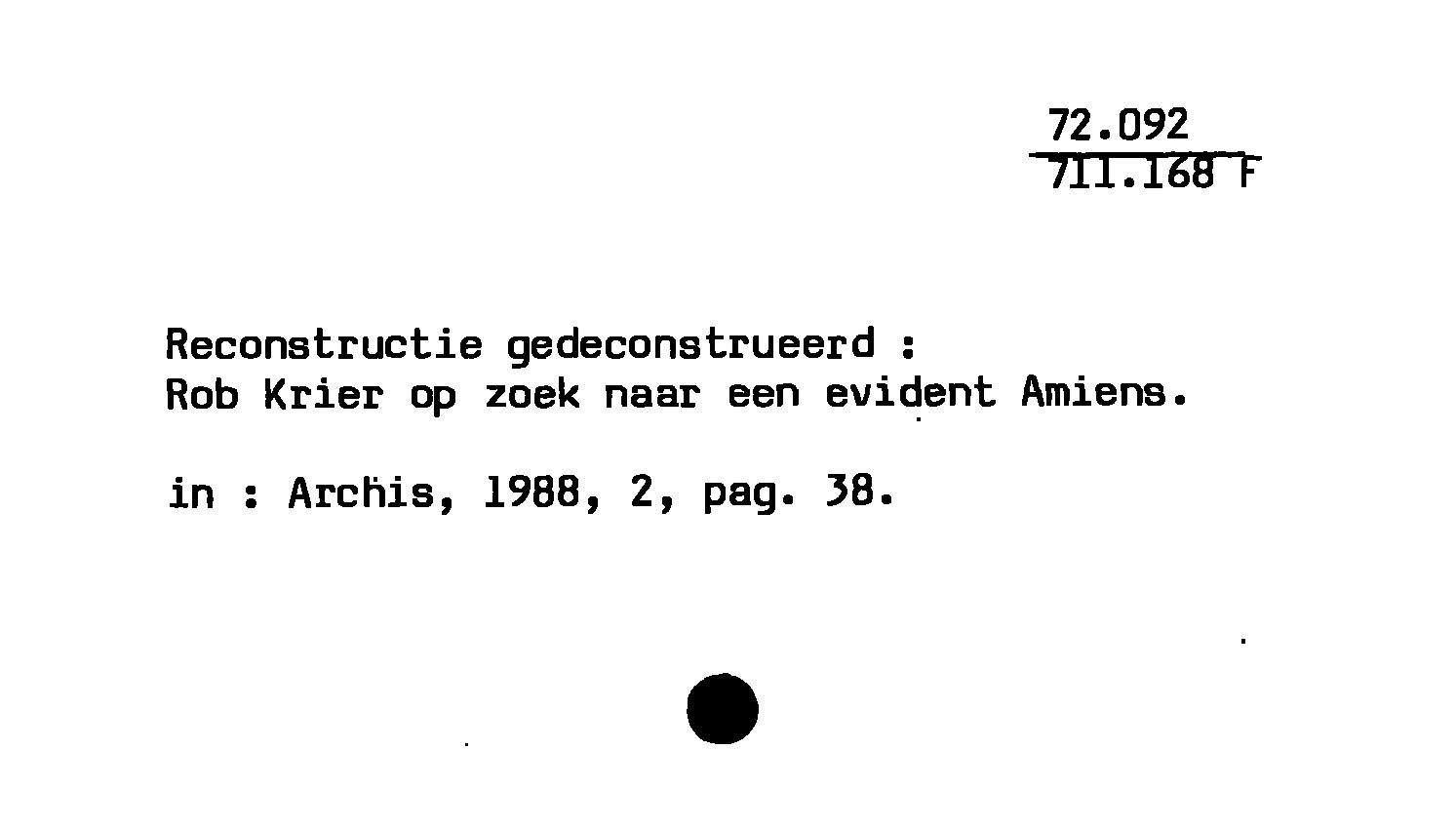 - Reconstructie gedeconstrueerd : Rob Krier op zoek naar een evident Amiens