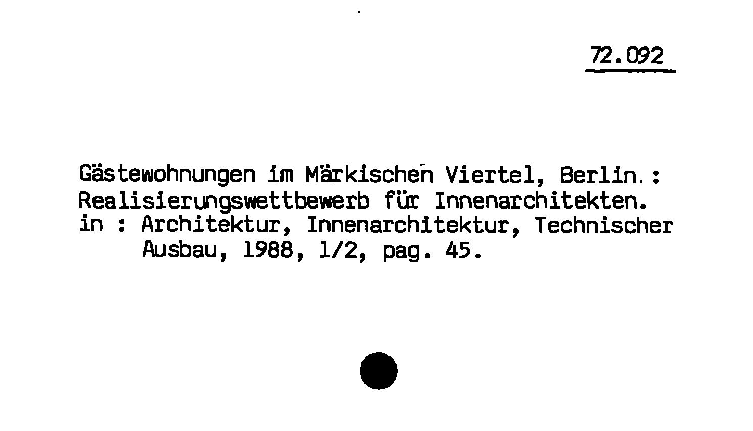 - Gastewohnungen im Markischen Viertel, Berlin : Realisierungswettbewerb fur Innenarchitekten