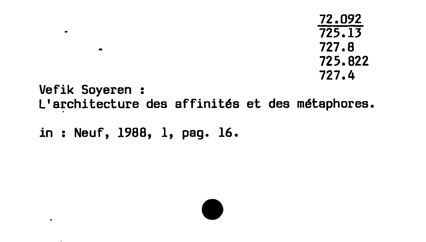 - Vefik Soyeren : L'architecture des affinités et des métaphores