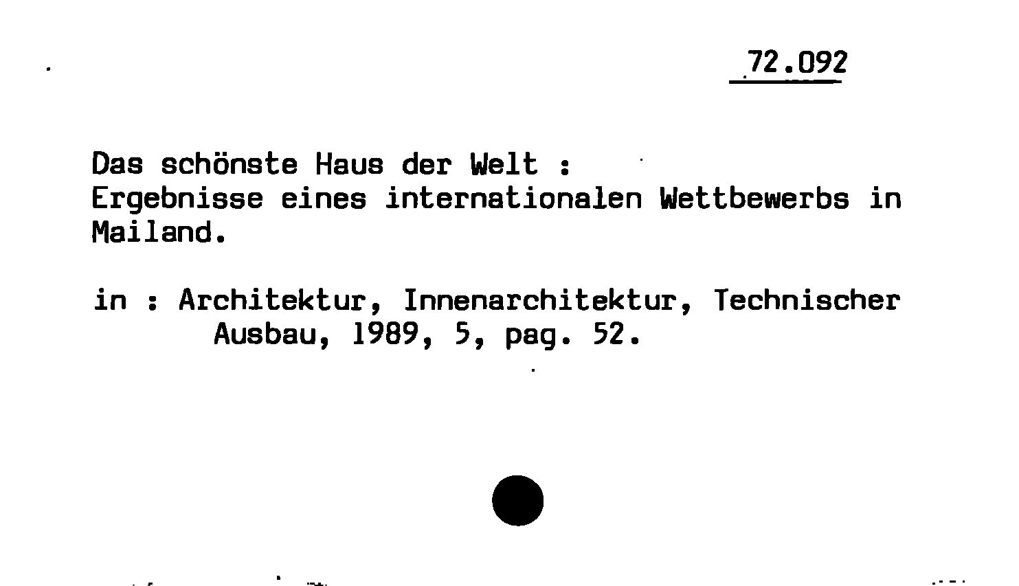 - Das schönste Haus der Welt : Ergebnisse eines internationalen Wettbewerbs in Mailand