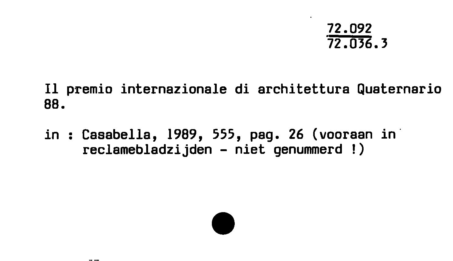 II premio internazionale di architettura Quaternario 88