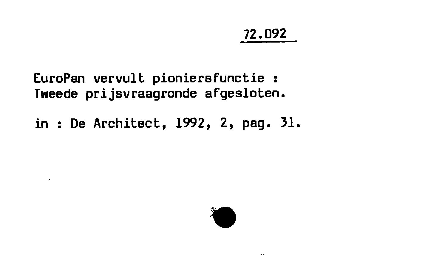 - EuroPan vervult pioniersfunctie : Tweede prijsvraagronde afgesloten