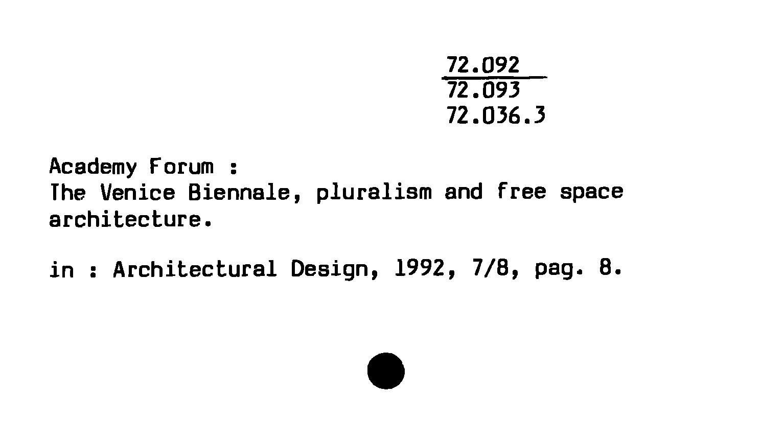 - Academy Forum : The Venice Biennale, pluralism and f ree space architecture