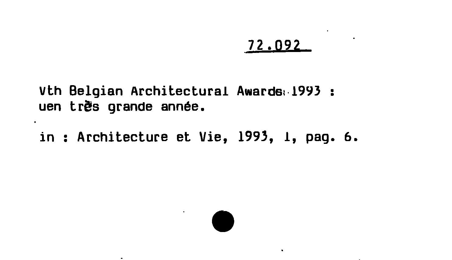 - Vth Belgian Architectural Awarde 1993 : une très grande année