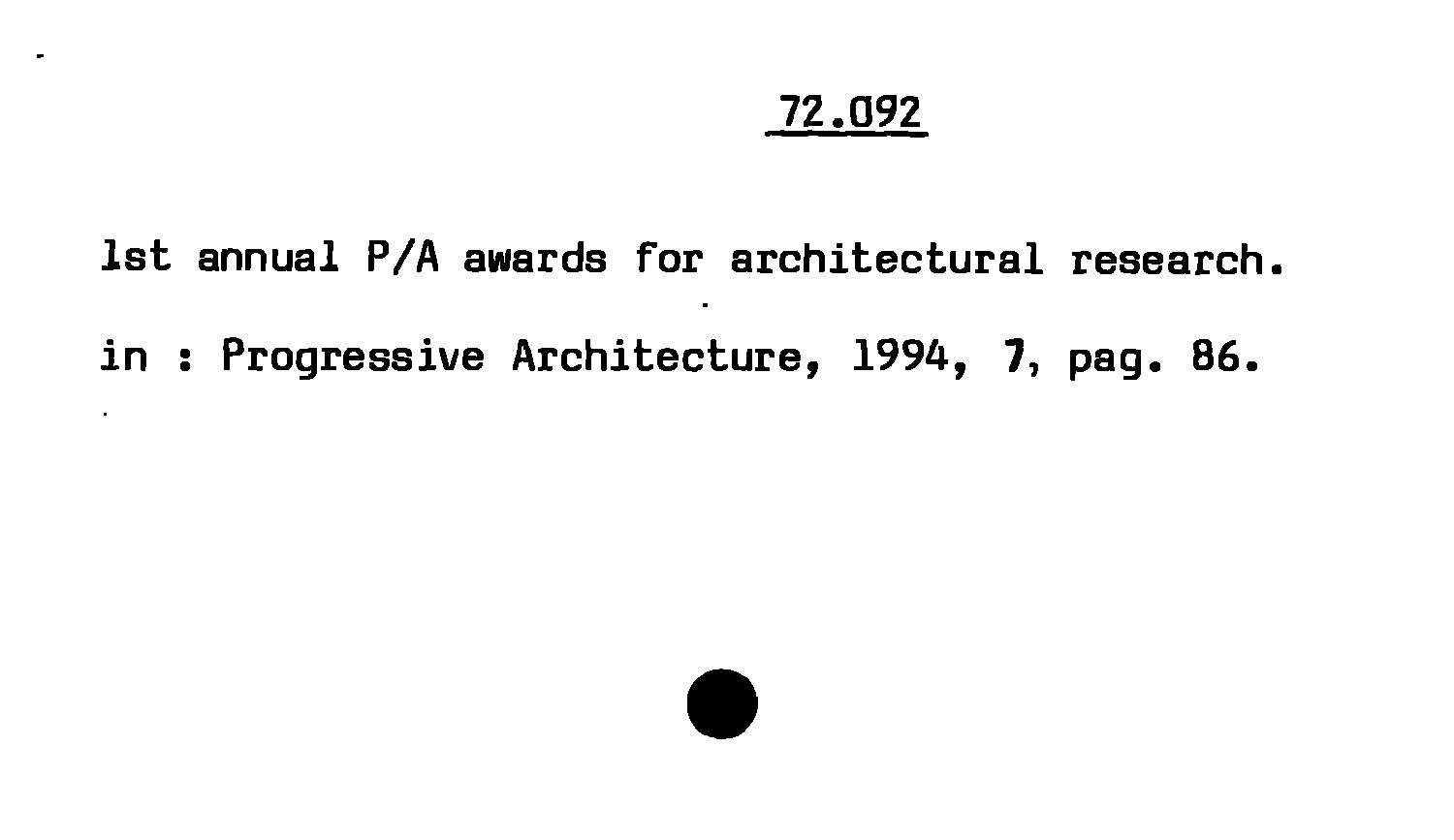 1st annual P/A awards for architectural research