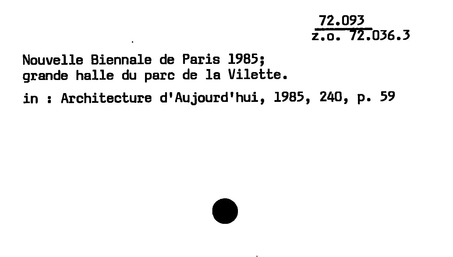 - Noouvelle Biennale de Paris 1985 : grande halle du pare de la Vilette