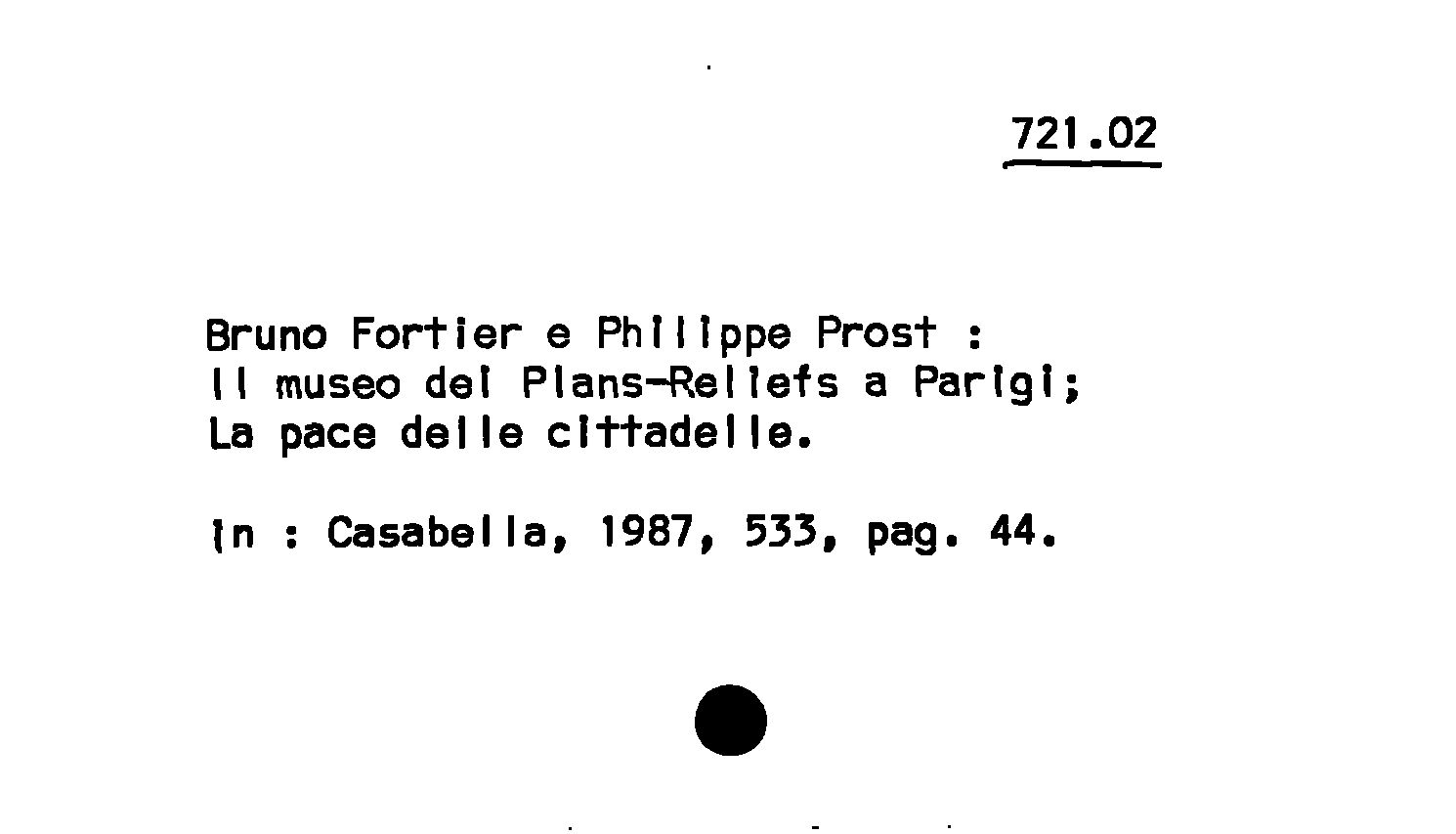 - Bruno Fortier e Philippe Prost : II museo del Plans-RelIefs a Parigi ; La pace delIe cittadelle