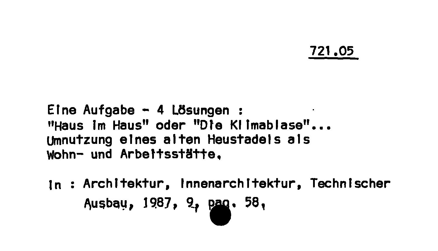 - EIne Aufgabe - 4 Lösungen : "Haus lm Haus" oder "Die Klitmablase". ; Umnutzung eines alten Heustadels als Wohn- und Arbeitsstätte