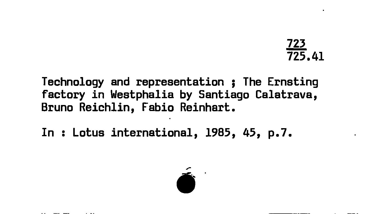 - Technology and representation : The Ernsting factory in Westphalia by Santiago Calatrava, Bruno Reichlin, Fabio Reinhart
