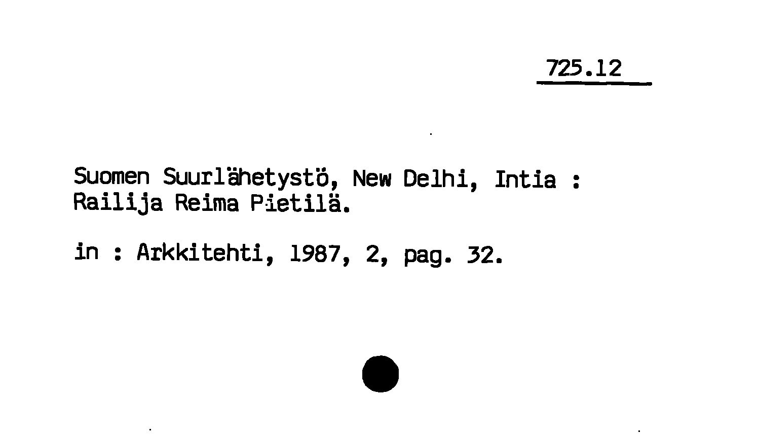 - Suomen Suurlähetystö, New Delhi, Intia : Railija Reima Pietilä