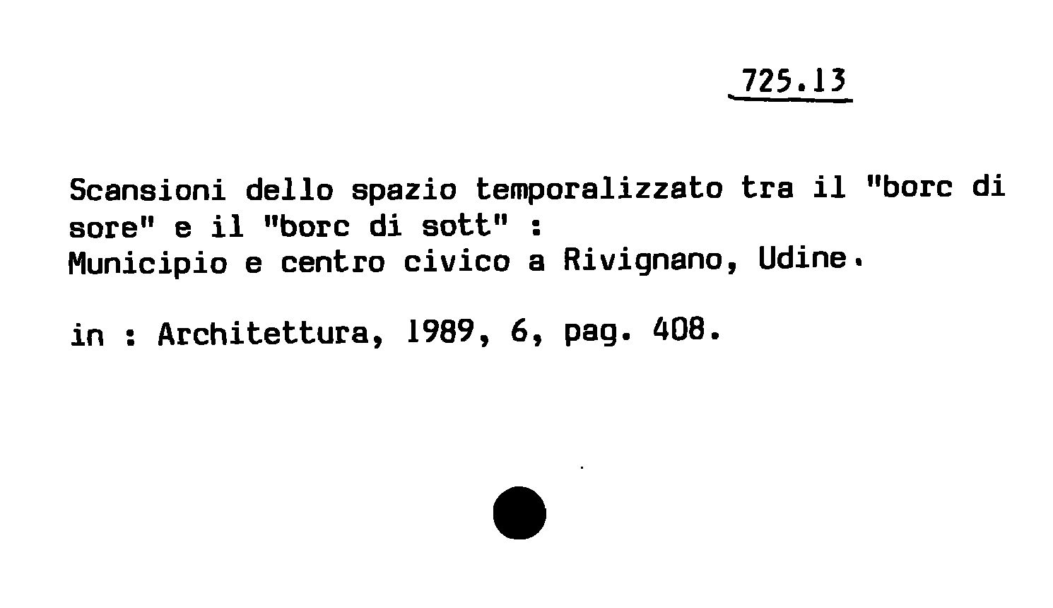 - Scansioni dello spazio temporalizzato tra il "borc di sore" e il "borc di sott" : Municipio e centro civico a Rivignano, Udine