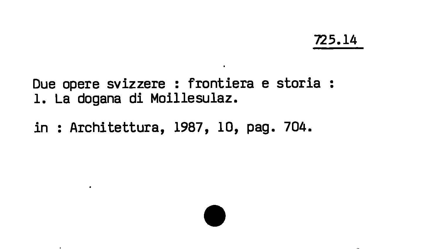 - Due opere svizzere : frontiera e storia ; 1 La dogana di Molllesulaz