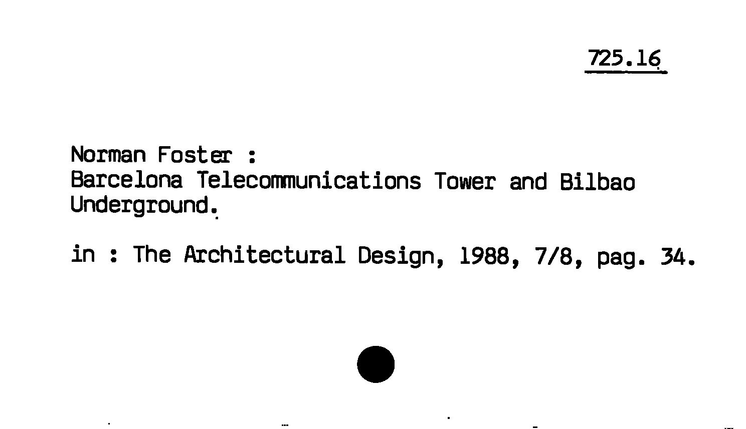 - Morman Foster : Barcelona Telecommunications Tower and Bilbao Underground