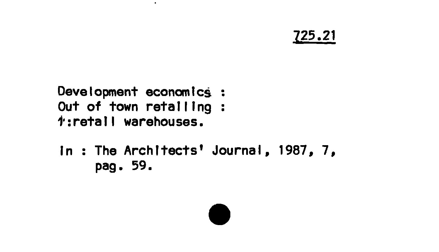 - Development economics : Out of town retailing ; 1: retail warehouses
