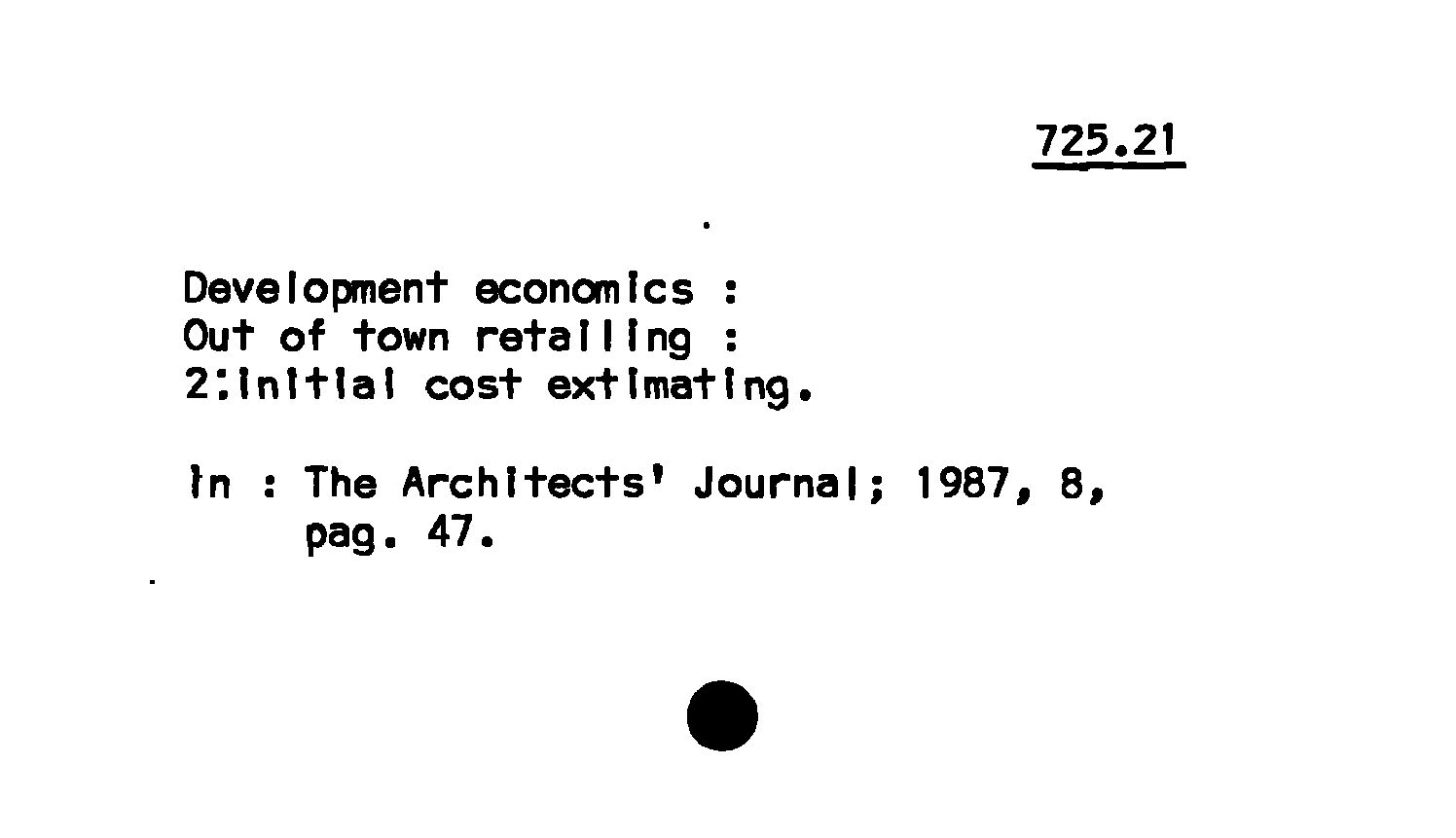 - Development economics : Out of town retailing ; 2:Initial cost extimating