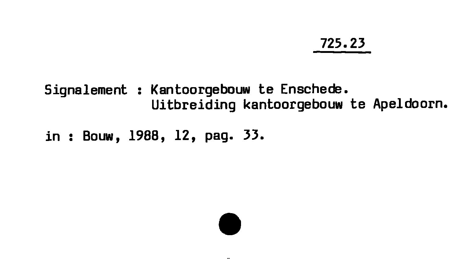 - Signalement : Kantoorgebouw te Enschede. Uitbreiding kantoorgebouw te Apeldoorn