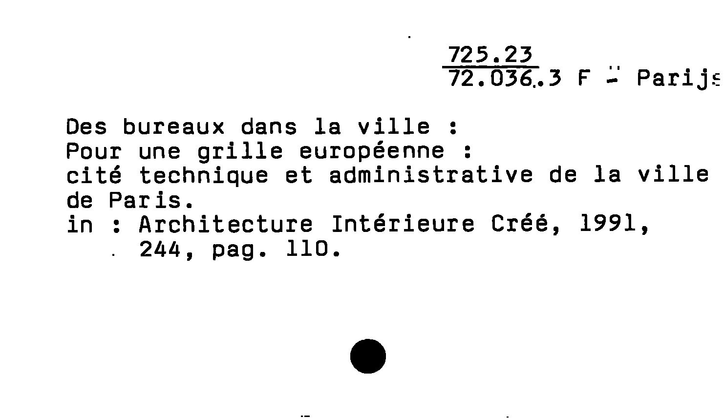 - Des bureaux dans la ville : Pour une grille européenne ; cité technique et administrative de la ville de Paris