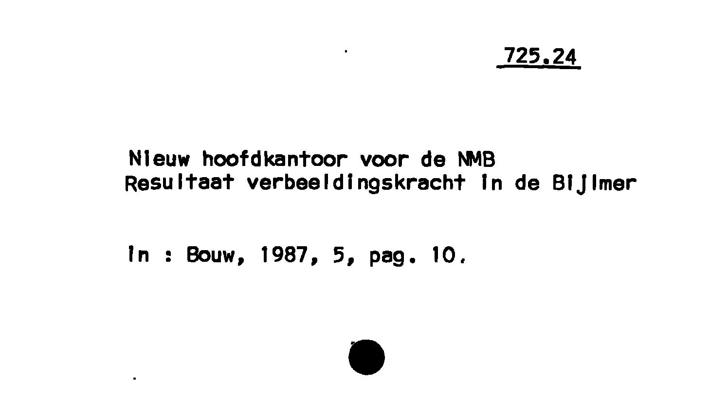 - Nieuw hoofdkantoor voor de NMB : Resultaat verbeeldingskracht in de Bijlmer