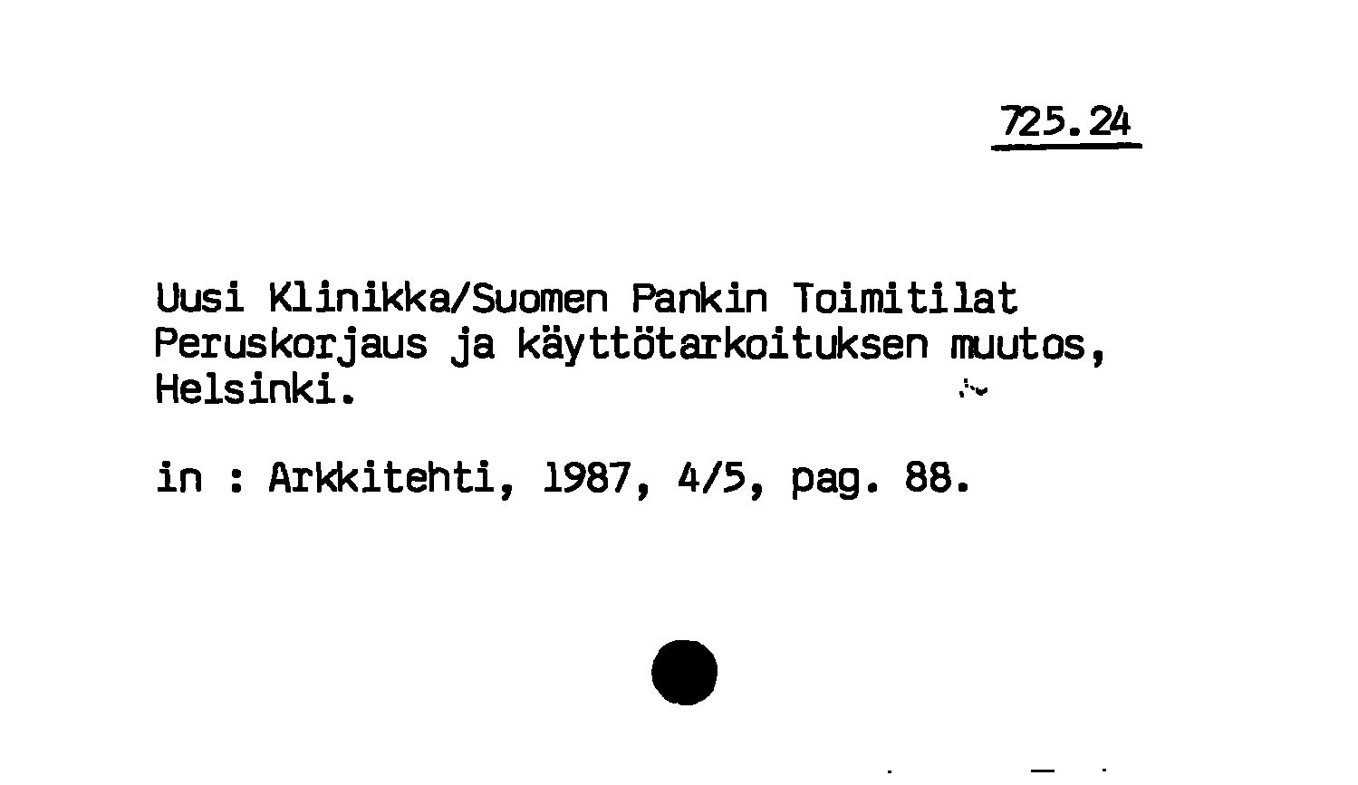 - Uusi Klinikka/Suomen Pankin Toimitilat : Peruskorjaus ja käyttötarkoituksen muutos, Helsinki