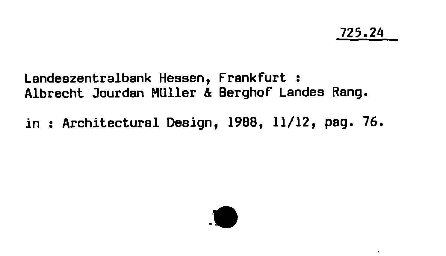 Landeszentralbank Hessen, Frankfurt : Albrecht Jourdan Muller & Berghof Landes Rang